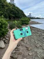 Filmikaamera Yashica MF-1 Snapshot Art Camera, korduvkasutatav, türkiis, sisaldab ISO 400 värvifilmi